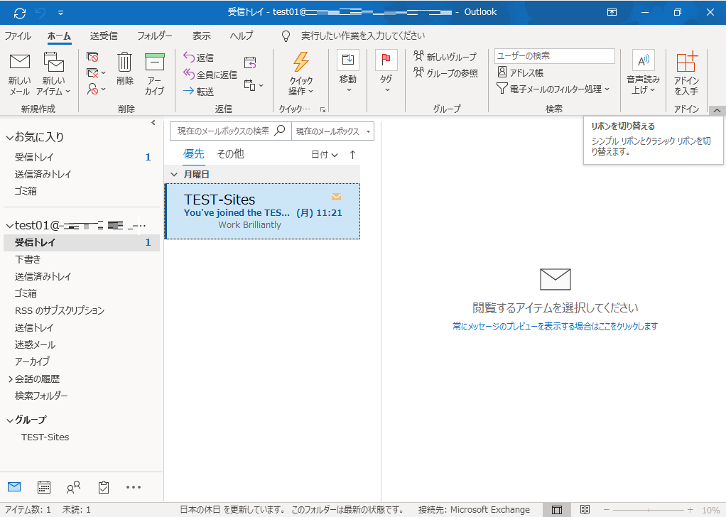 で、設定後に再度OutlookやOWAを開くと日本語表記になっている。