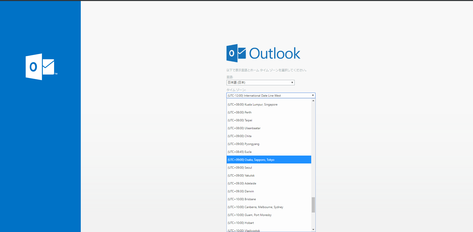 - 初期ログイン時にタイムゾーンの設定が聞かれるので「UTC+09:00Osaka,Sapporo,Tokyo」を選択する