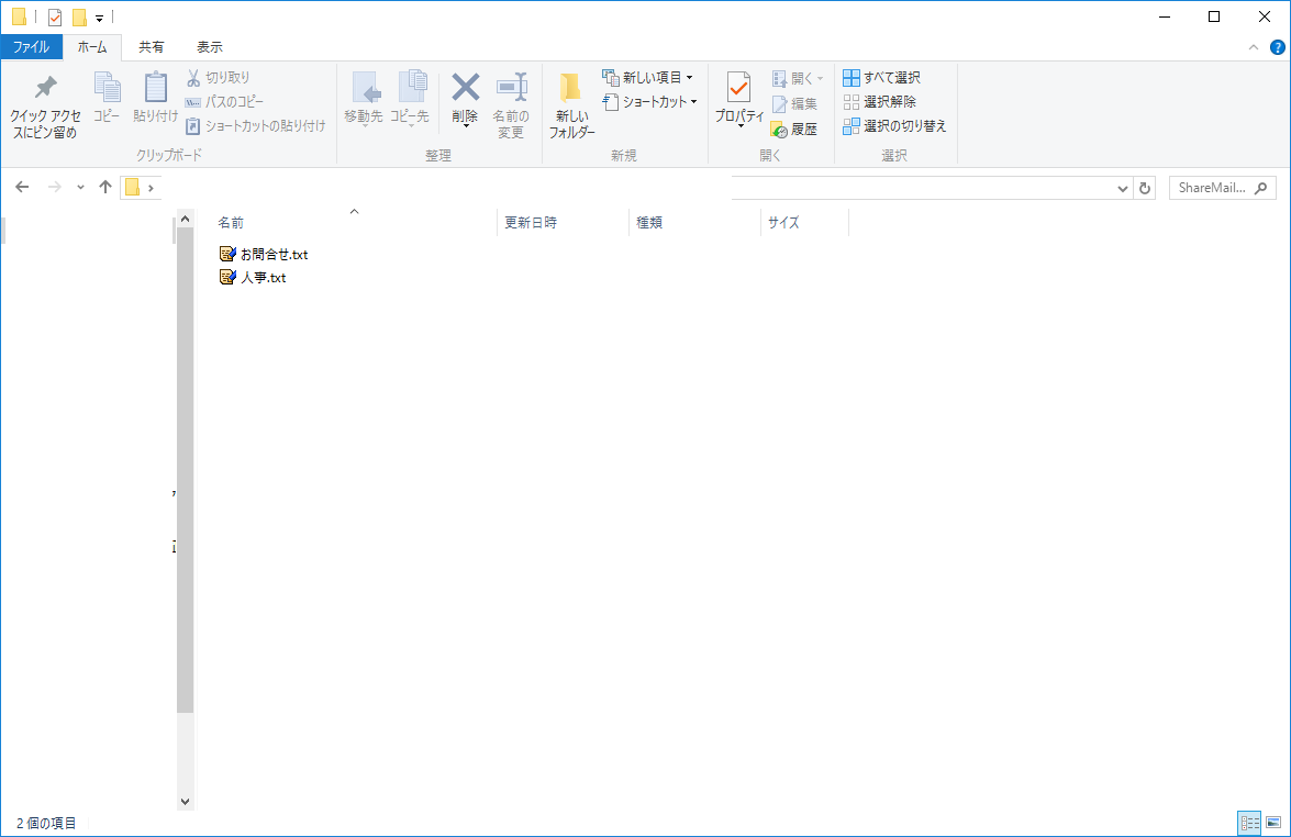 「ShareMailBoxMember」配下に共有メールボックスの「表示名」をファイル名としたテキストファイルを準備します。