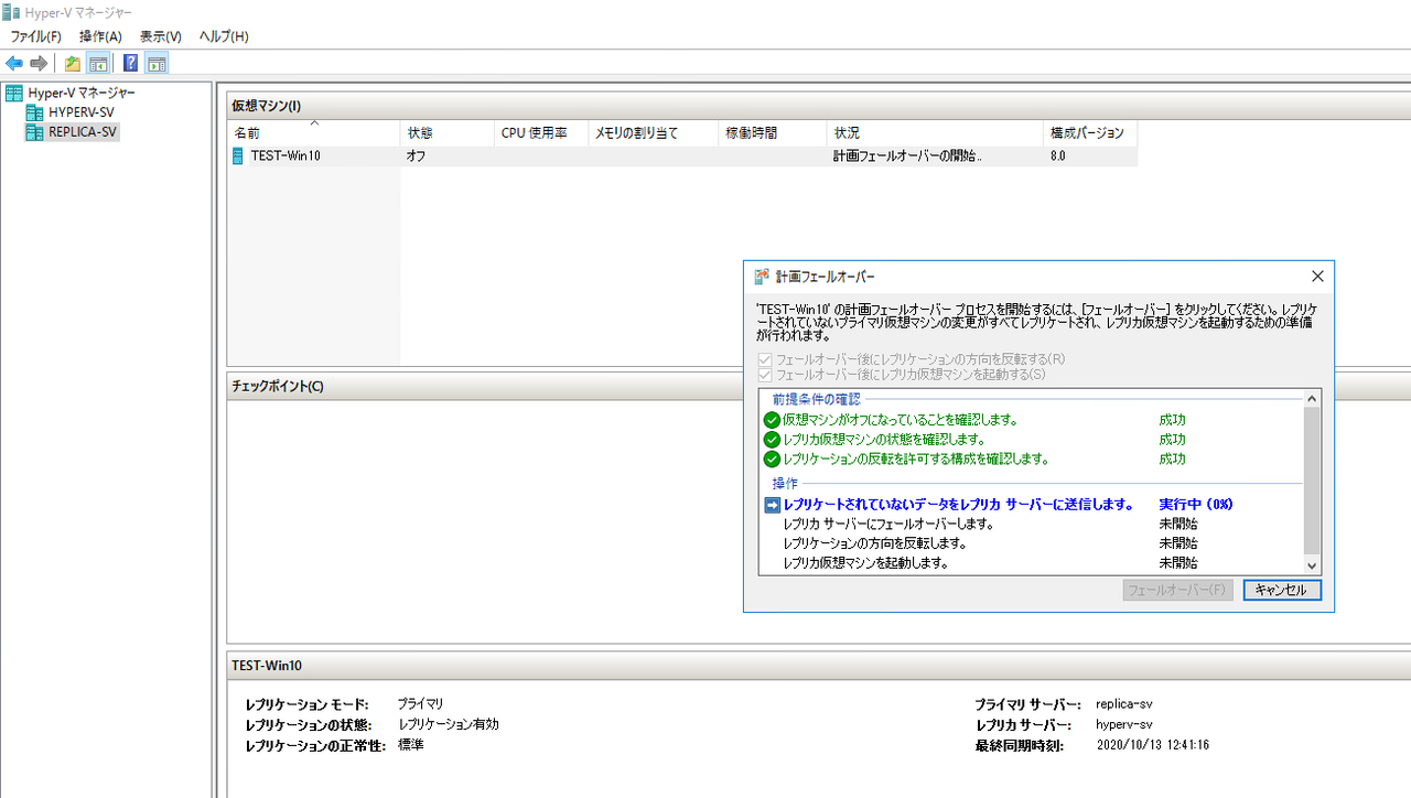 Hyper-V レプリカ機能のフェールオーバーとレプリケーションの反転 (計画フェールオーバー編)