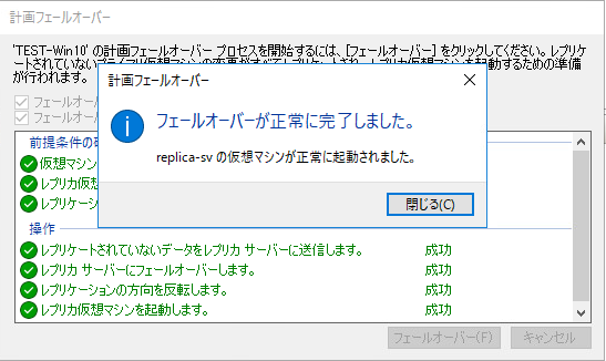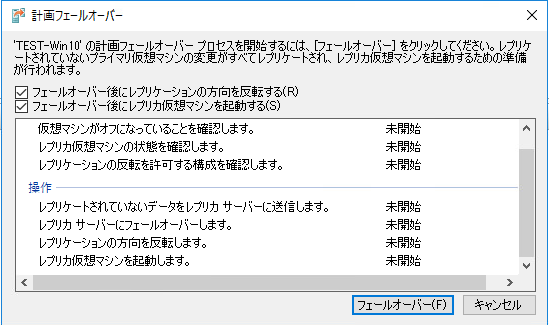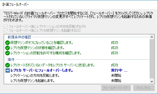 これで準備が整ったと思われるので、再度「計画フェールオーバー」を実行!!