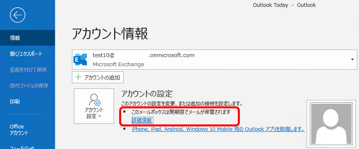 「メモ」や「ユーザーのための詳細情報が記載されたWebページ」はクライアント版Outlook2010以降を使用していた場合にユーザーに通知する機能となります。
