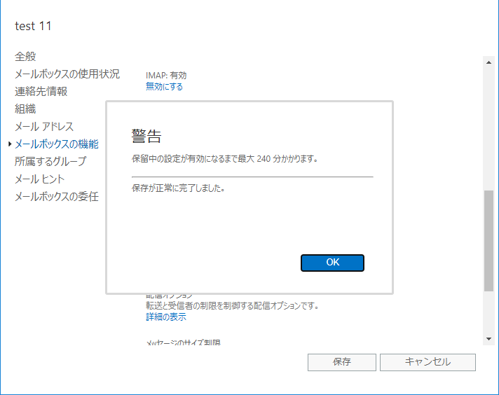 ただし、保存するときに警告が出るように設定反映までは時間がかかるようですね。