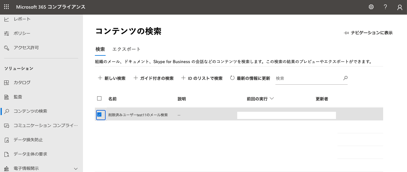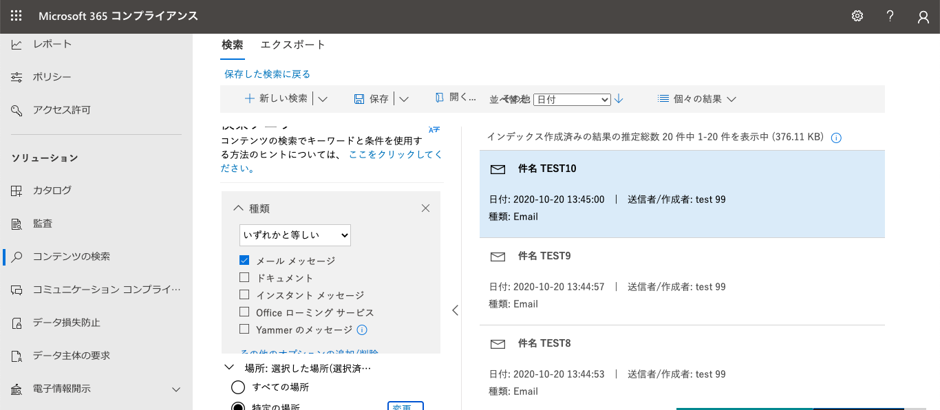 検証方法としては、「コンテンツの検索」を一定期間経過前と一定期間経過後の両日で実施し、それぞれダウンロードしたPSTファイルの中身を比較する形で検証しました。