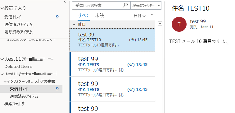 test09(訴訟ホールド未設定)の場合1.TESTメール作成直後