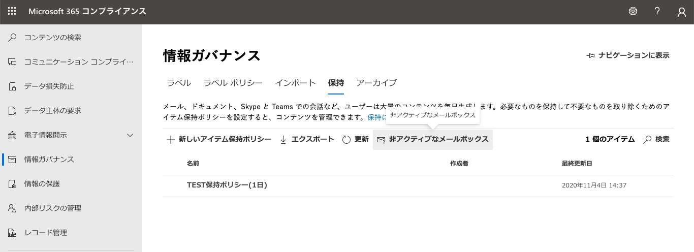 「メールボックスを訴訟ホールドの対象にする」にも記載がありましたが、実際に動作確認が取れて安心です(^^)