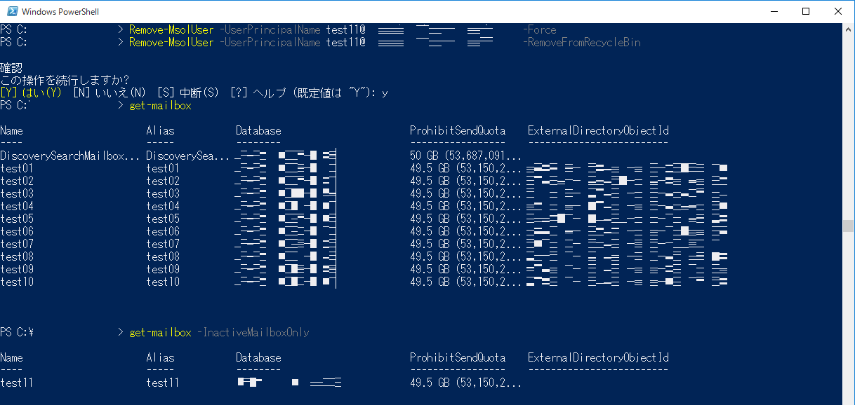 確認する場合には「Get-Mailbox」コマンドで可能です