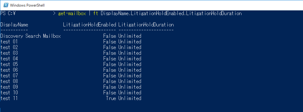 Set-Mailbox "メールアドレス" -LitigationHoldEnabled $true