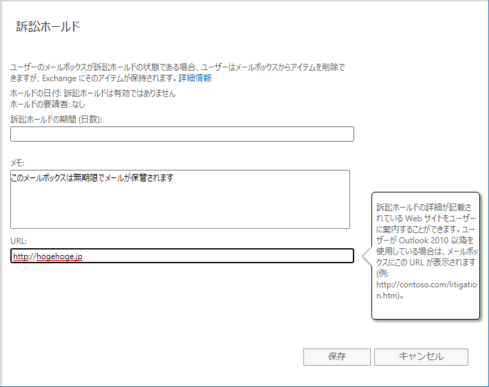 ※詳しくは「メールボックスを訴訟ホールドの対象にする」をご確認ください