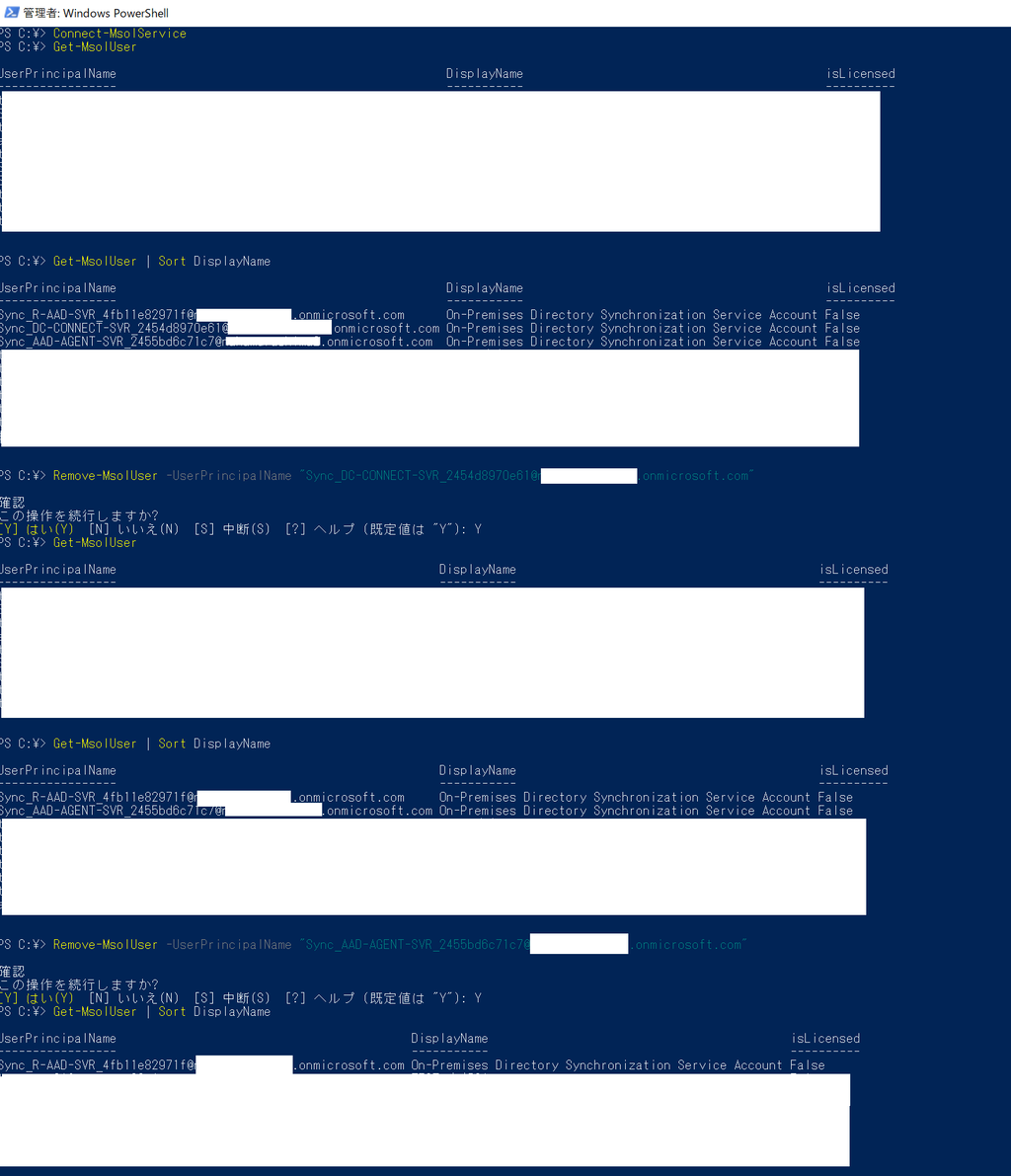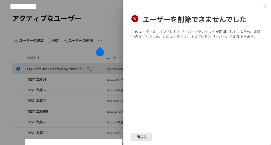 こんな感じでもう使用しなくなったAzure AD連携用のユーザーは削除可能です。