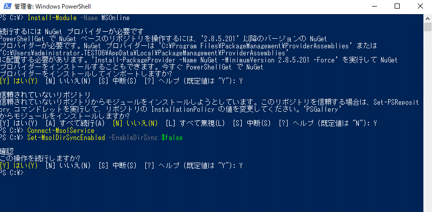 同期無効化方法は今のところPowershellコマンドだけのようです。なので早速コマンドを実行してみます。
