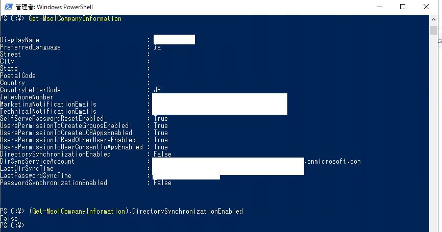 確認するコマンドは「Get-MsolCompanyInformation」