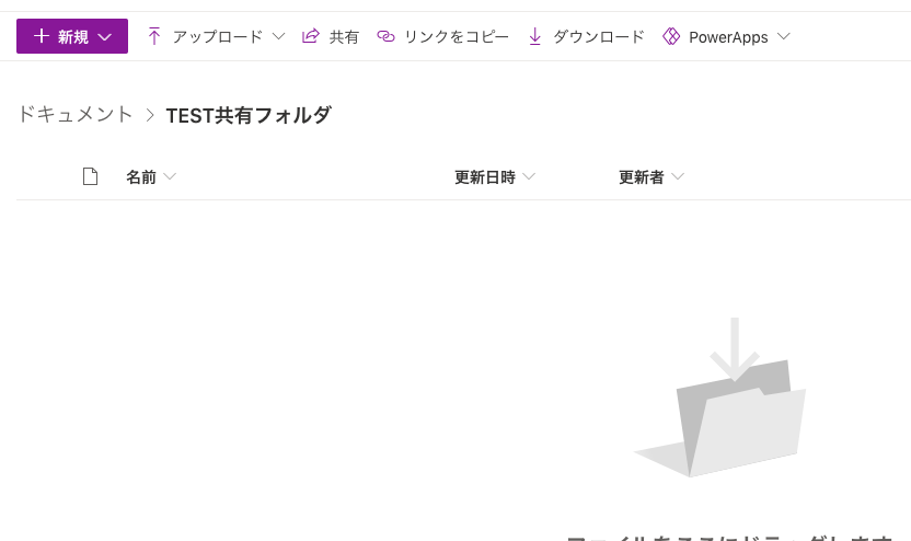 今回「編集権限あり」なので、フォルダ作成やファイルアップロードが可能です。