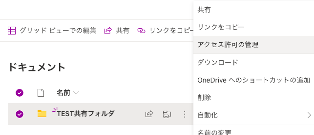 また、実際に外部共有した後に「共有相手」や「共有リンク」を確認したい時には「アクセス許可の管理」から確認出来ます。