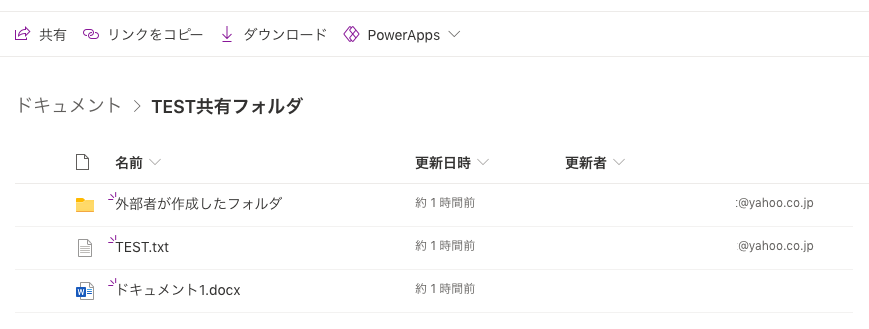 正しく認証されれば、共有されたSharePoint Onlineのフォルダにアクセス出来ます!