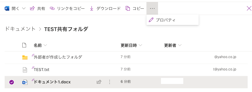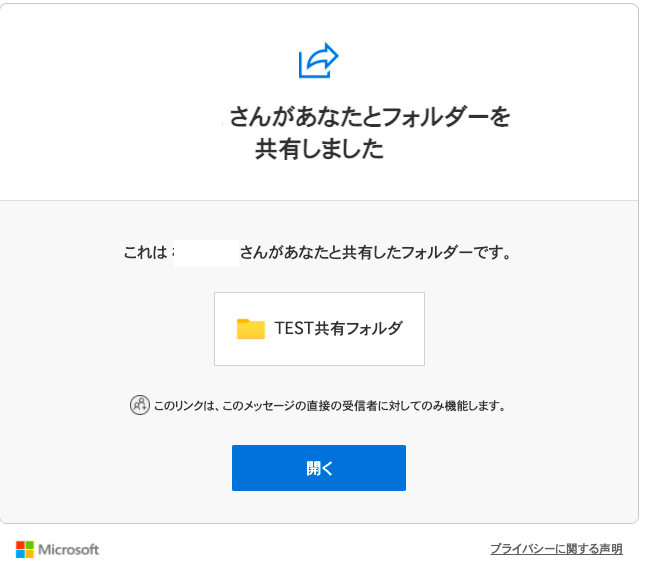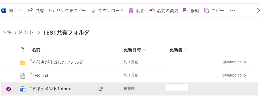 ※今回共有したメールアドレスはMicrosoftアカウントの登録はしていないので、メールアドレスがそのまま表示されますが、Microsoftアカウントの登録をしていた場合には「表示名」で表示されることがあります。