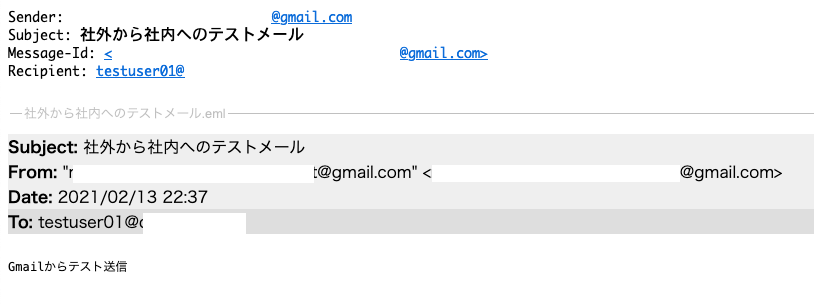 ジャーナルレポート(メッセージ)には.emlファイルが添付されており、それを開くとオリジナルのメッセージそのままに確認が取れる仕組みになっています。