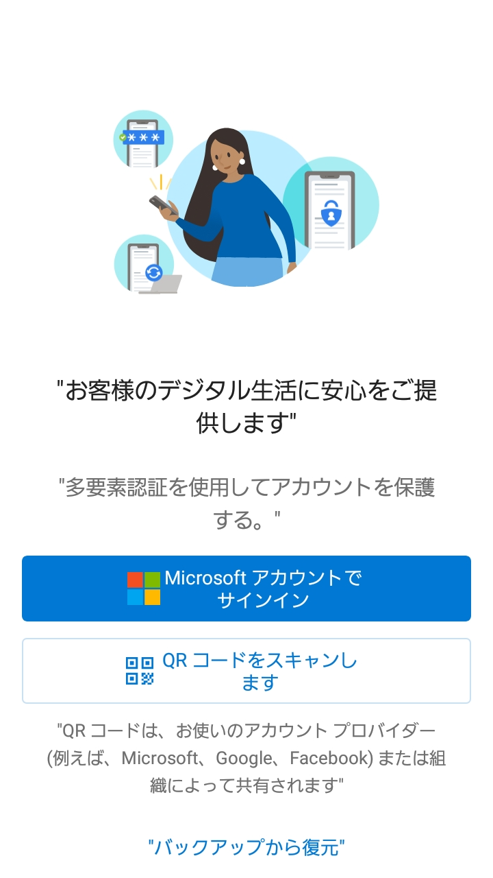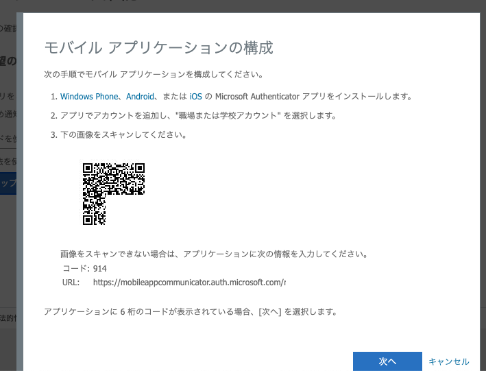 上記画面が表示されるので、まずはスマホアプリの「Microsoft Authenticator」をインストールします。