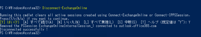 切断するときは「Disconnect-ExchangeOnline」でOK!