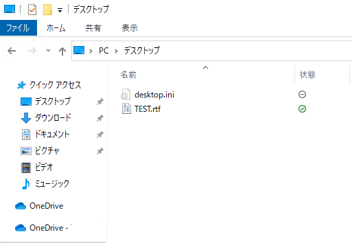 最後に「デスクトップ」等をOneDriveに同期した場合に、「desktop.ini」等のシステムファイルはどうなのか確認してみました。