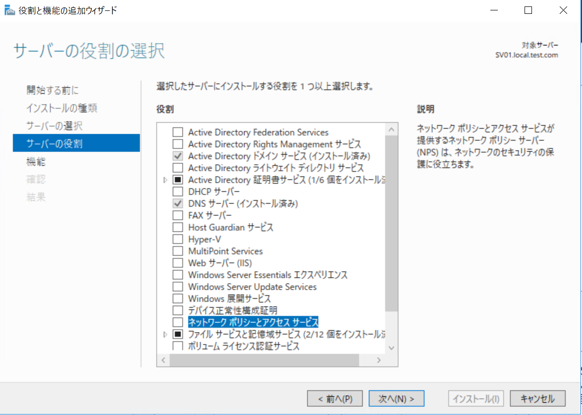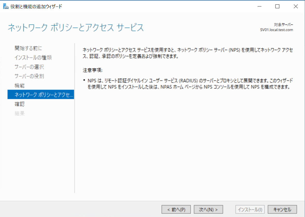 今回はNPS(ネットワークポリシーサーバー)機能のインストールと設定編です。