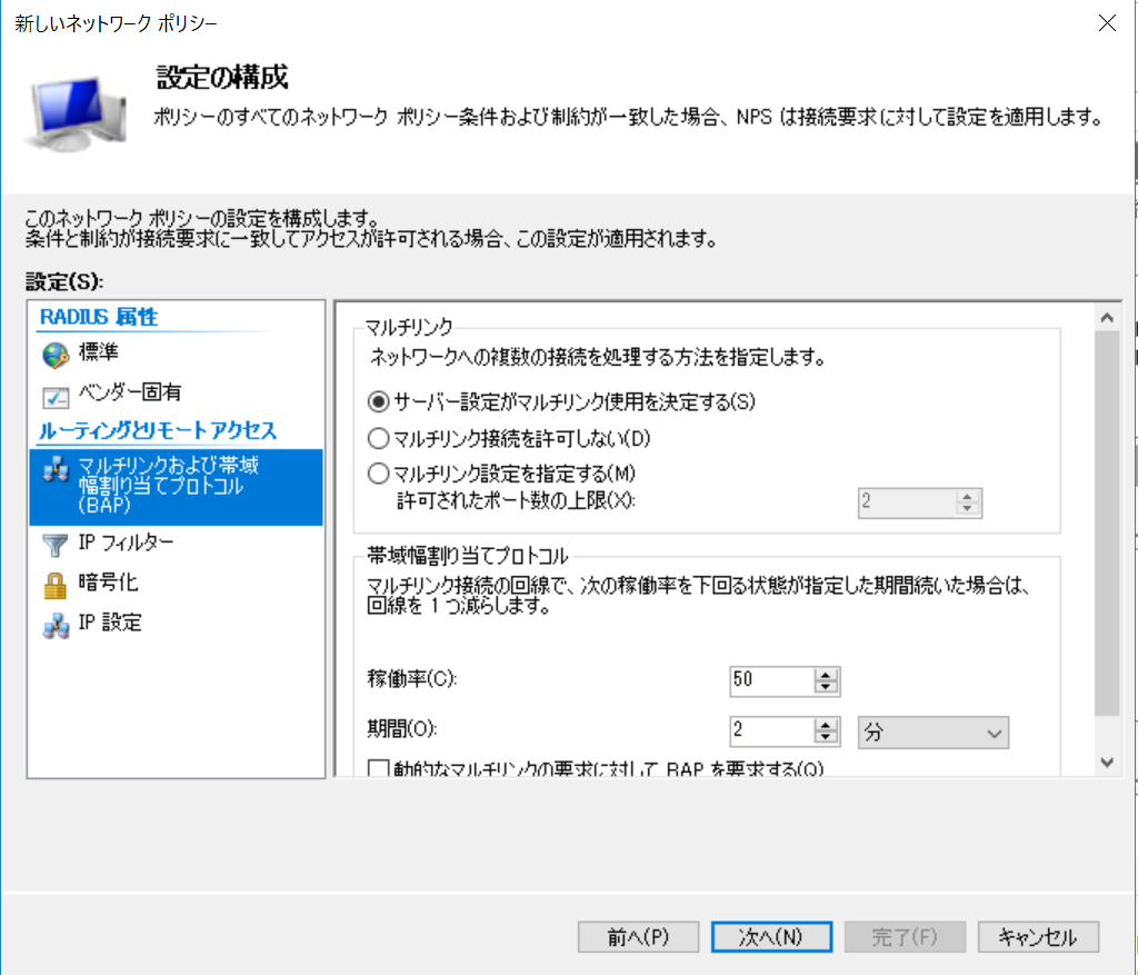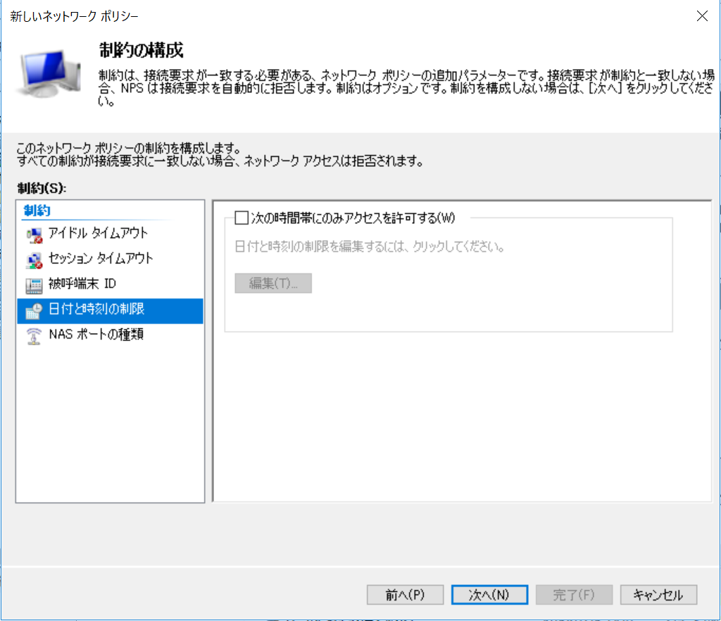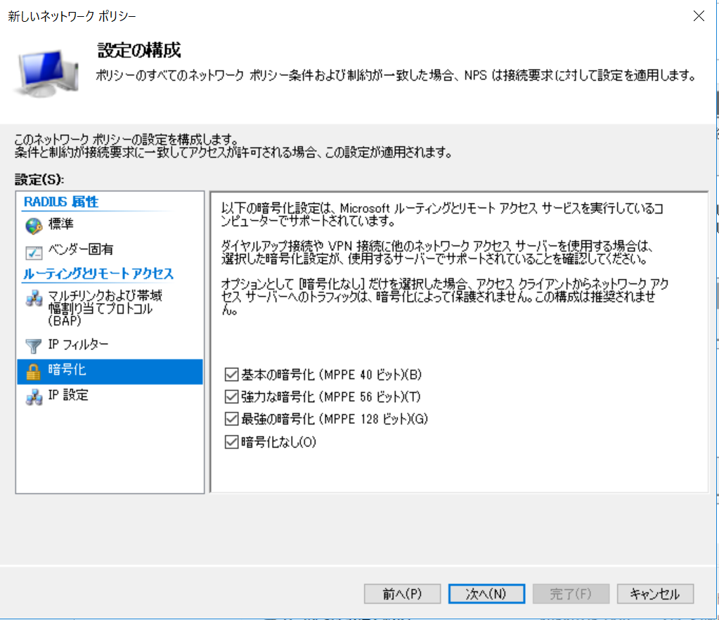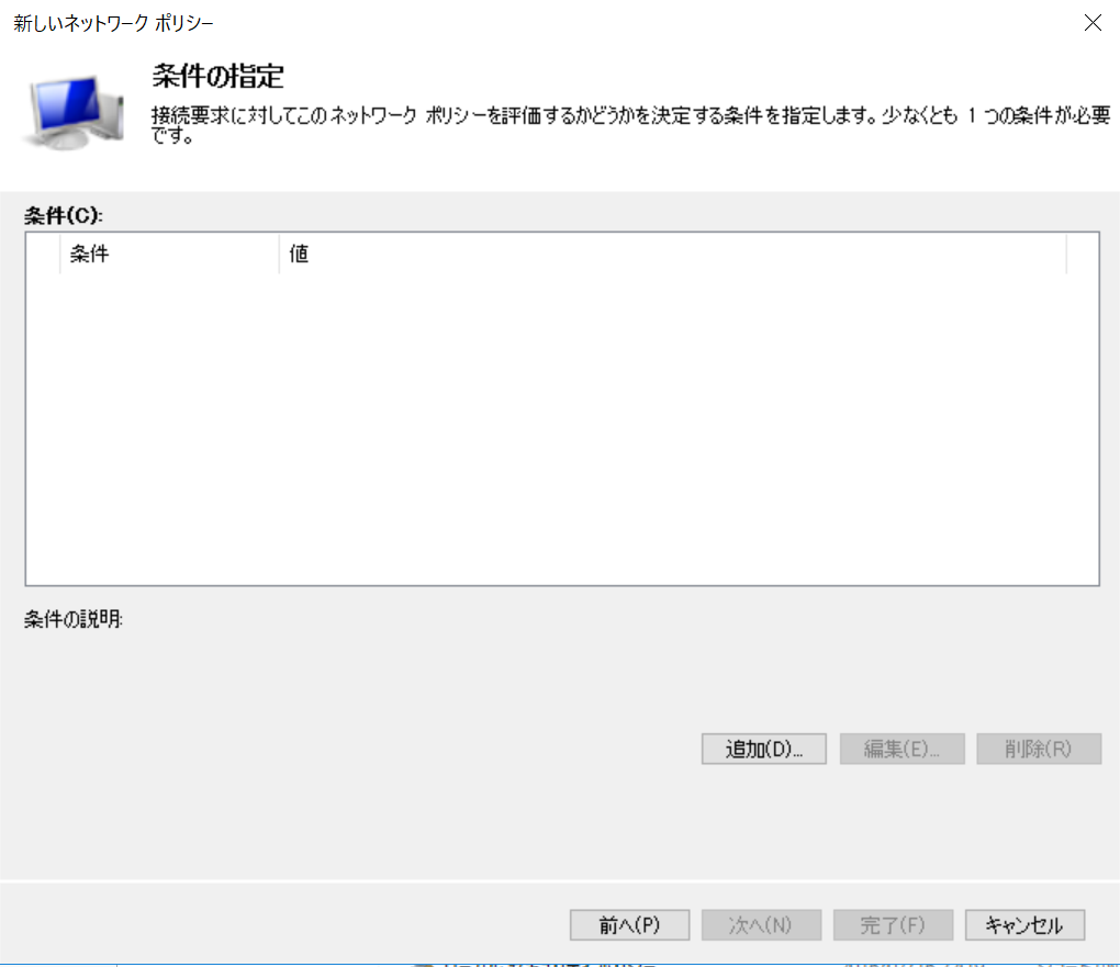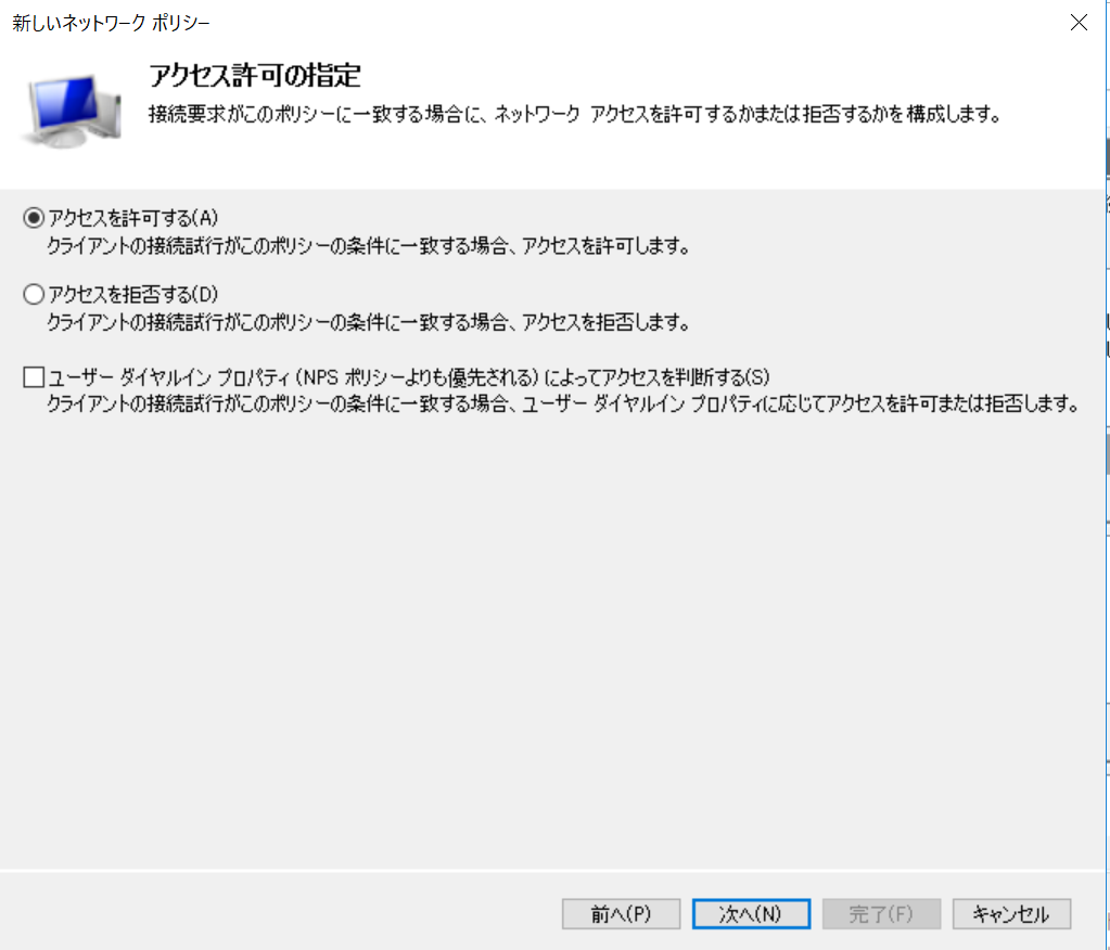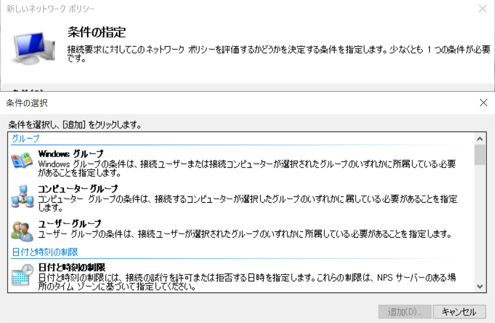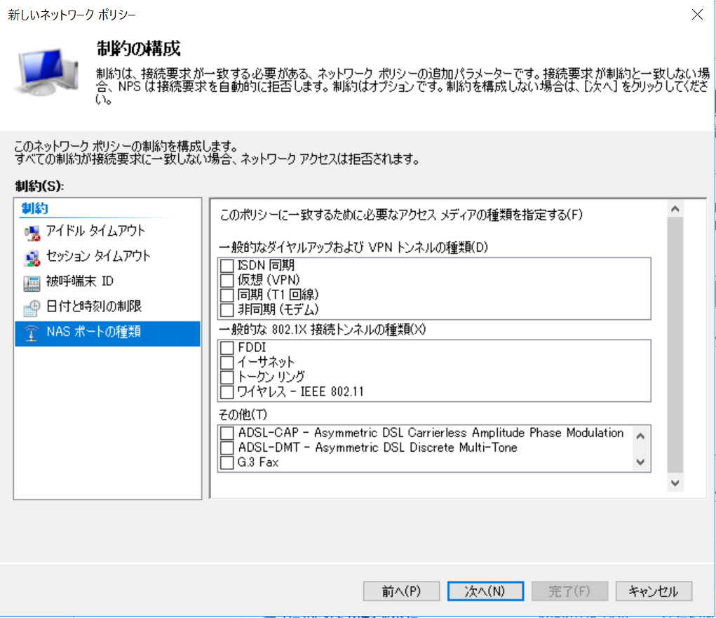 (注)本当は「NASポートの種類」に「イーサネット」という条件も付与したかったのですが、