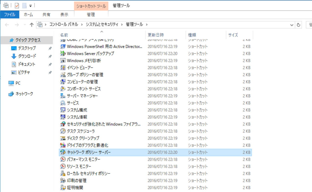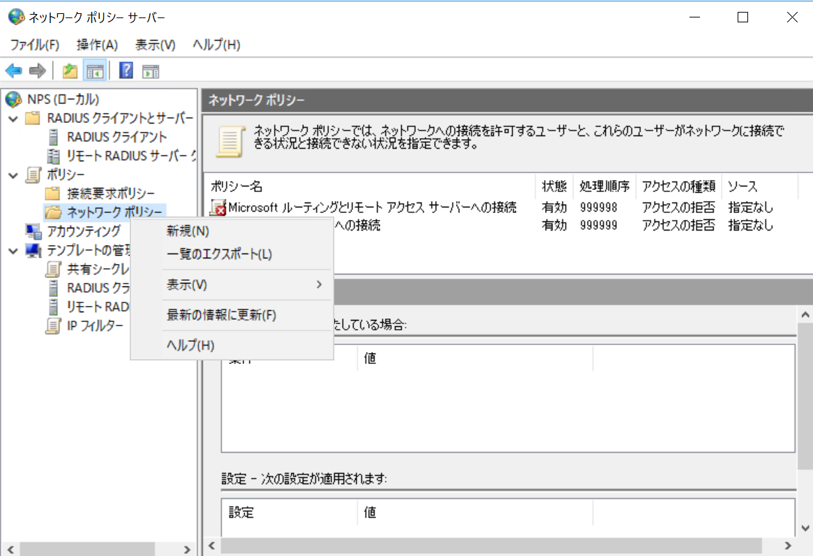 設定は管理ツールの「ネットワークポリシーサーバー」から行います。