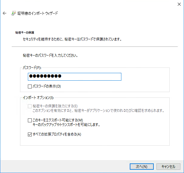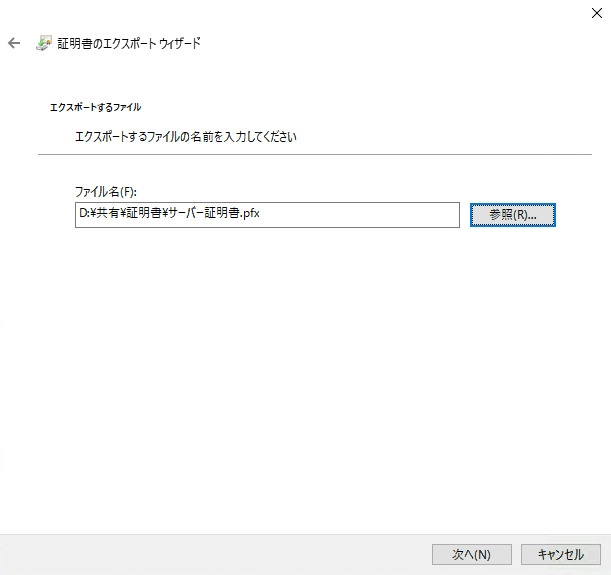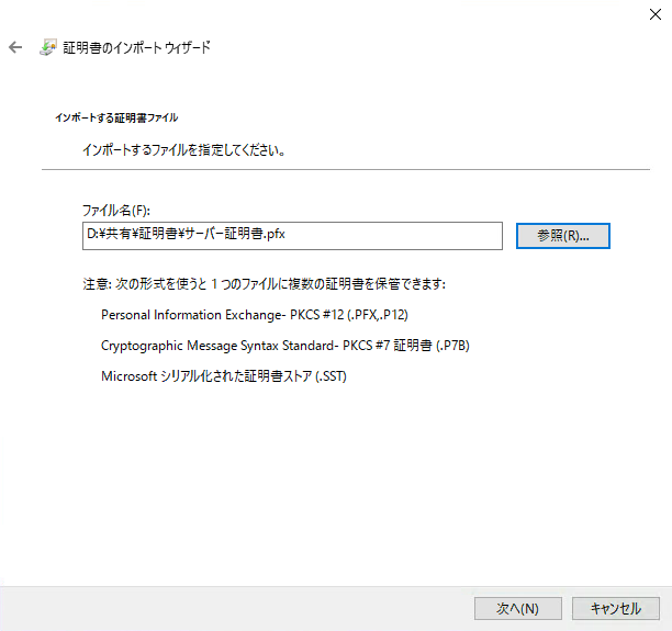 続いて「サーバー証明書」を所定の位置にインポートします。