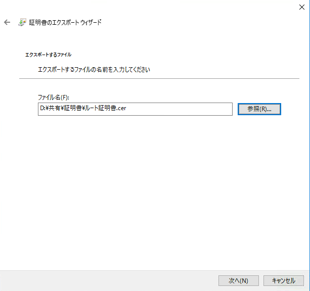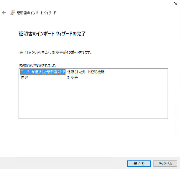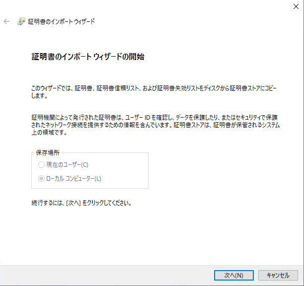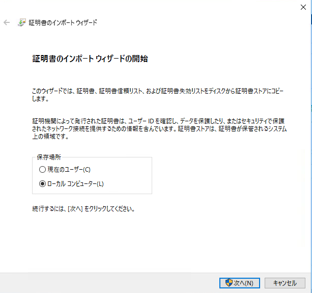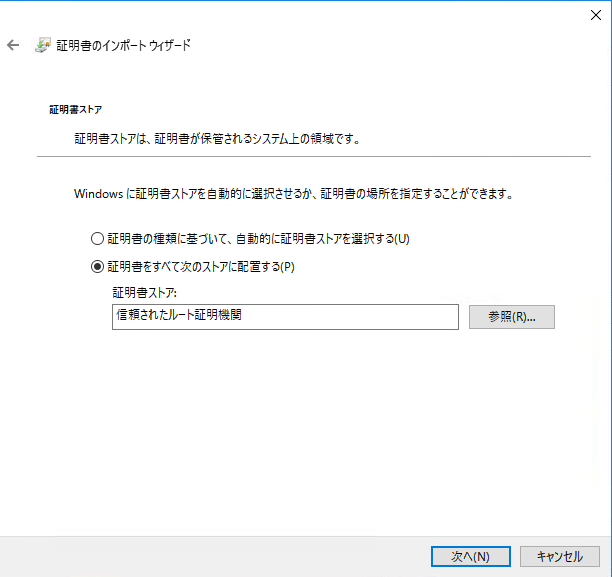 - 「生成したサーバー証明書」を所定の場所にインポートする
