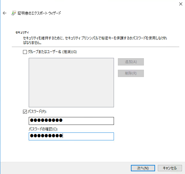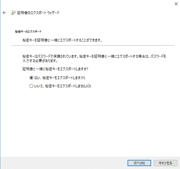 - 「生成したサーバー証明書」と「ルート証明書」をエクスポートする