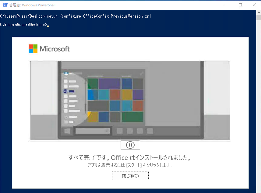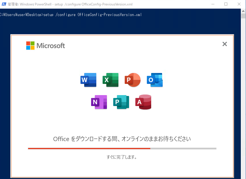 xmlファイルの準備が出来たので、Office展開ツールを実行します。