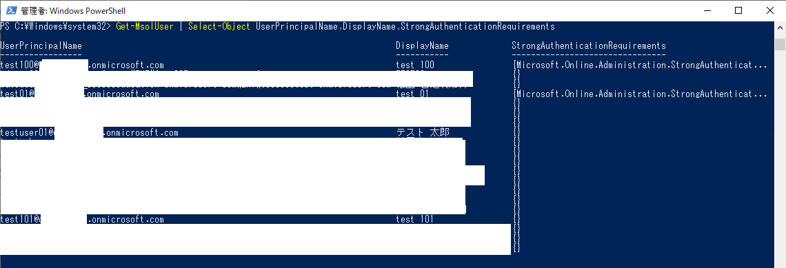 う〜〜ん、単純に「StrongAuthenticationRequirements」と指定しただけではオブジェクト情報しか表示出来ませんね。