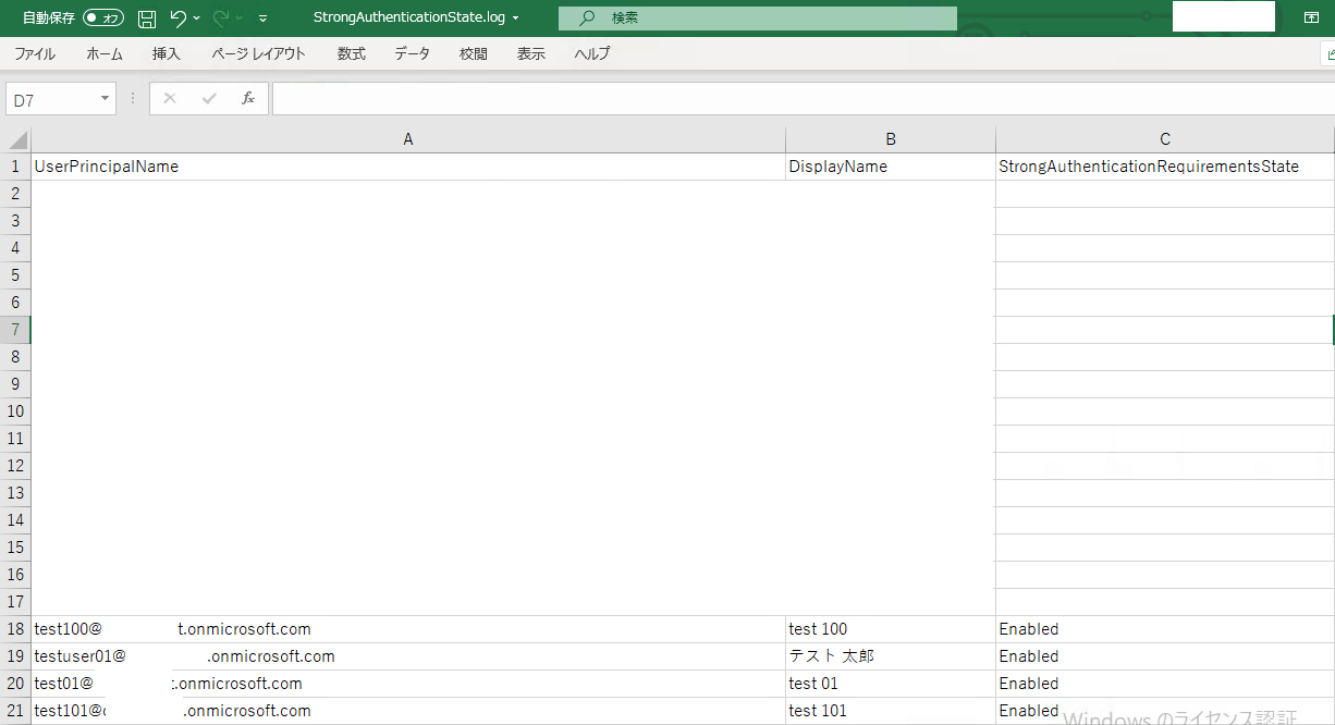 今回はユーザー毎の多要素認証の有効化を一括で設定する検証となります。