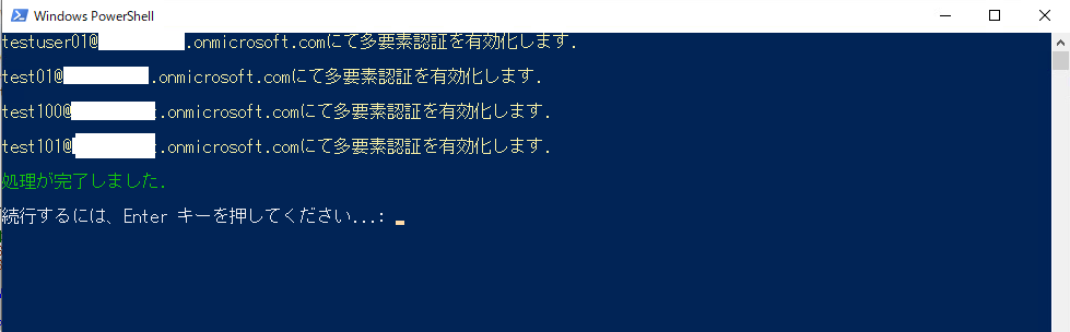 Write-Host "${UserName}にて多要素認証を有効化します. `r`n" -ForegroundColor Yellow
