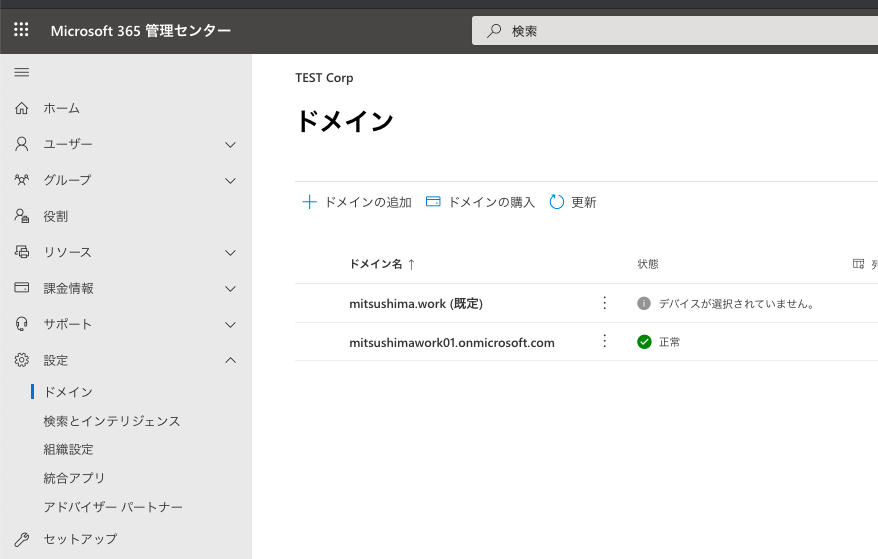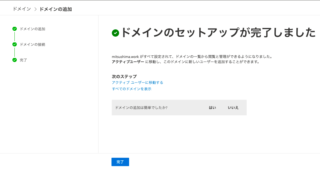 これでユーザー名(メールアドレス)にカスタムドメインを使用する準備が整いました。
