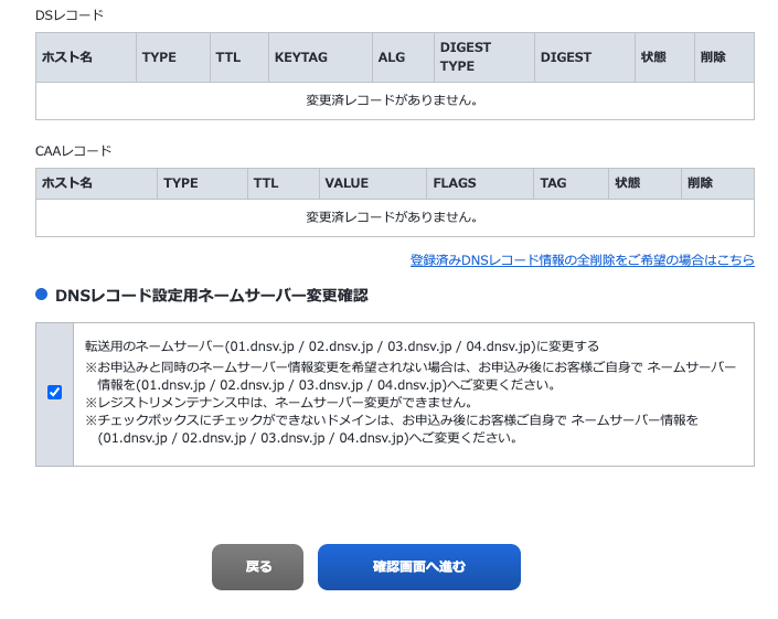 追加後に画面下部へスクロールして「確認画面へ進む」をクリックします。
