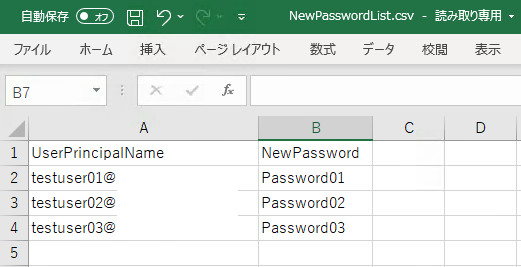 #CSVファイルを用意し、対象のユーザーのパスワードリセット(再設定)を一括で実行