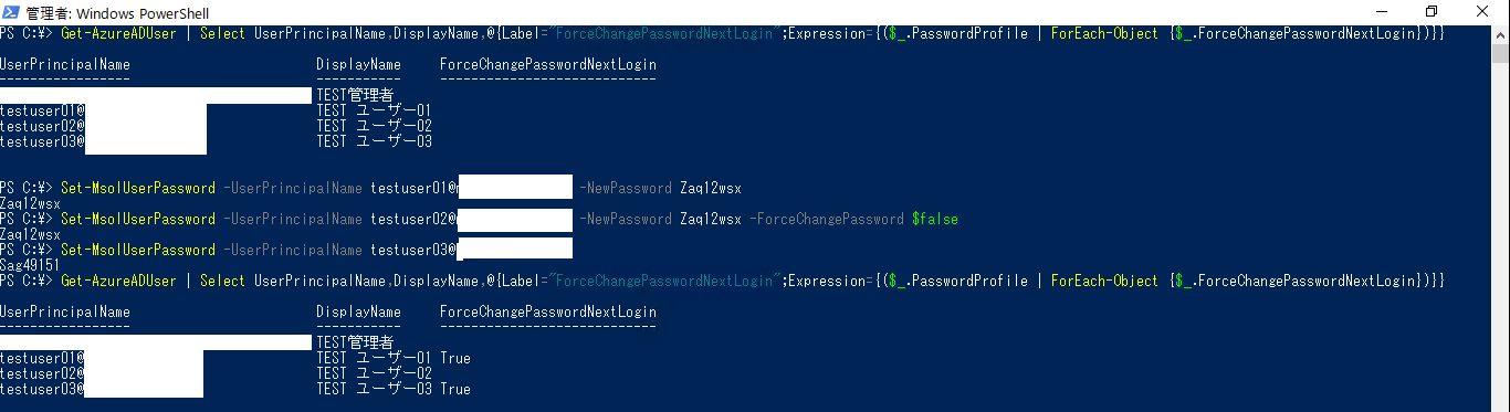 ※「Set-AzureADUserPassword」コマンドでも同じことは可能かと思われます。