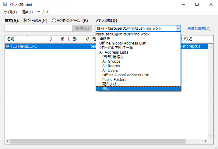 今回は「備品」のアドレス一覧(アドレス帳リスト)を作成していこうと思います。