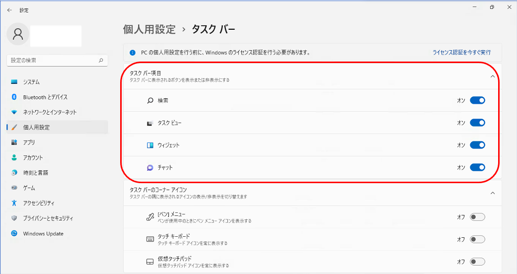 ※「タスクバーのコーナーアイコン」や「タスクバーの動作」については別記事で検証結果をまとめてます。