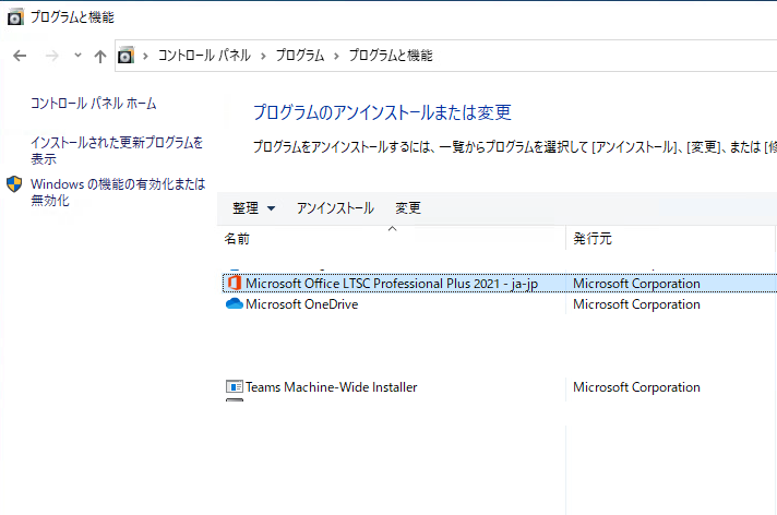 また、2021にはTeamsが標準でインストールされるため、「Teams Machine-Wide Installer」がインストールされていることがわかります。