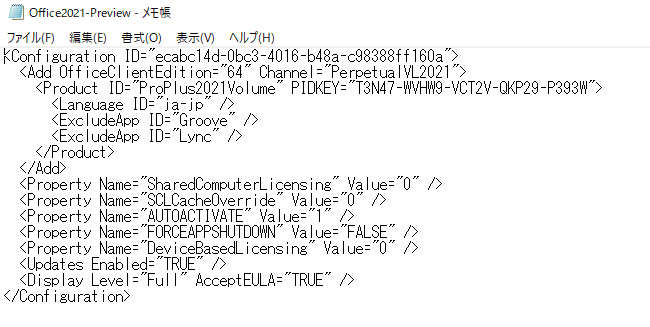 1.Office 2021用のxmlファイルを用意する