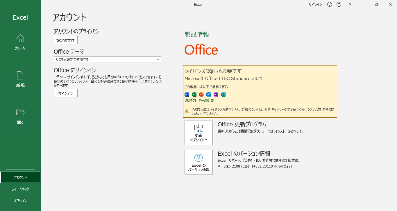 実際に「LTSC Standard 2021」をインストールするとこんな感じでした。