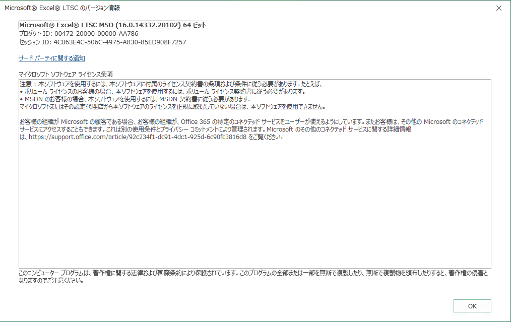 ※内部バージョンが「16.0」であることがわかります。