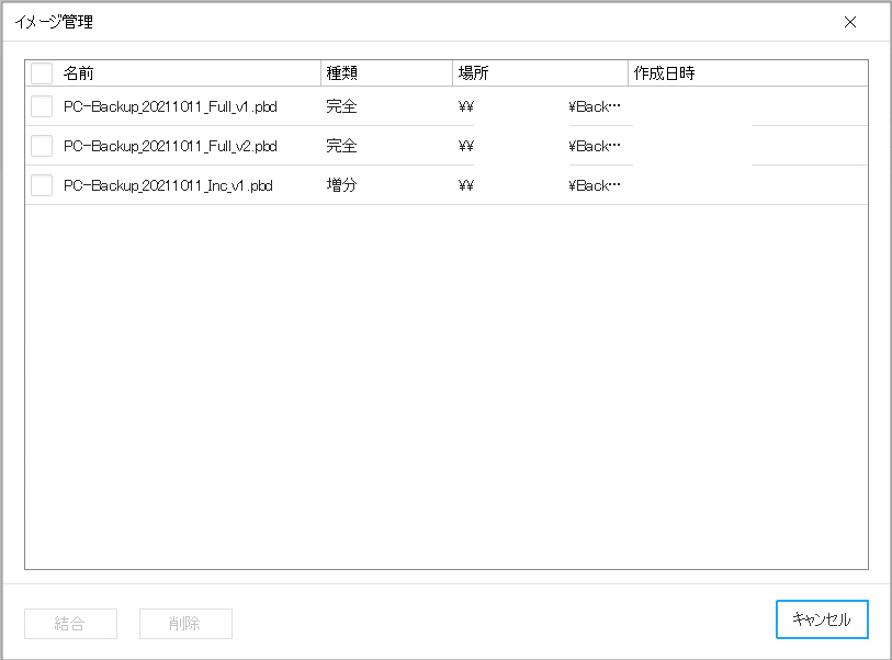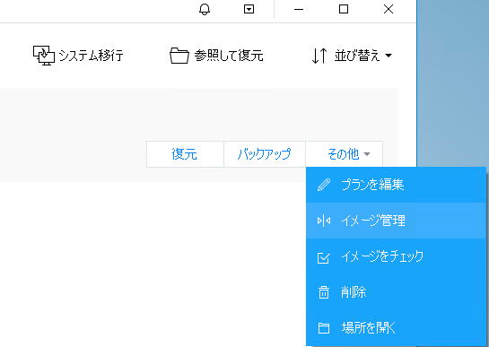 他にも作成したバックアッププランの「イメージ管理」より各バックアップデータを確認可能です。
