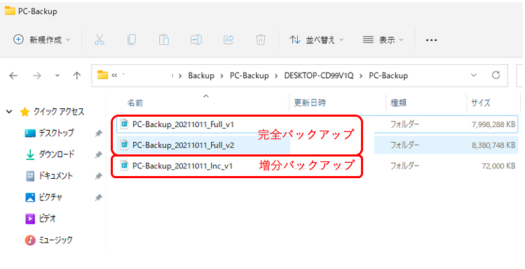 「〜Inc〜」であれば、増分バックアップ方式