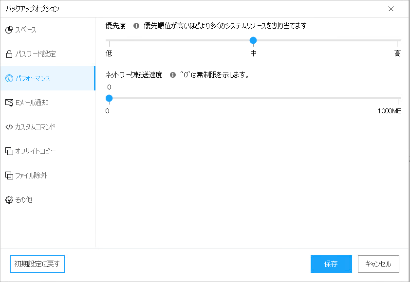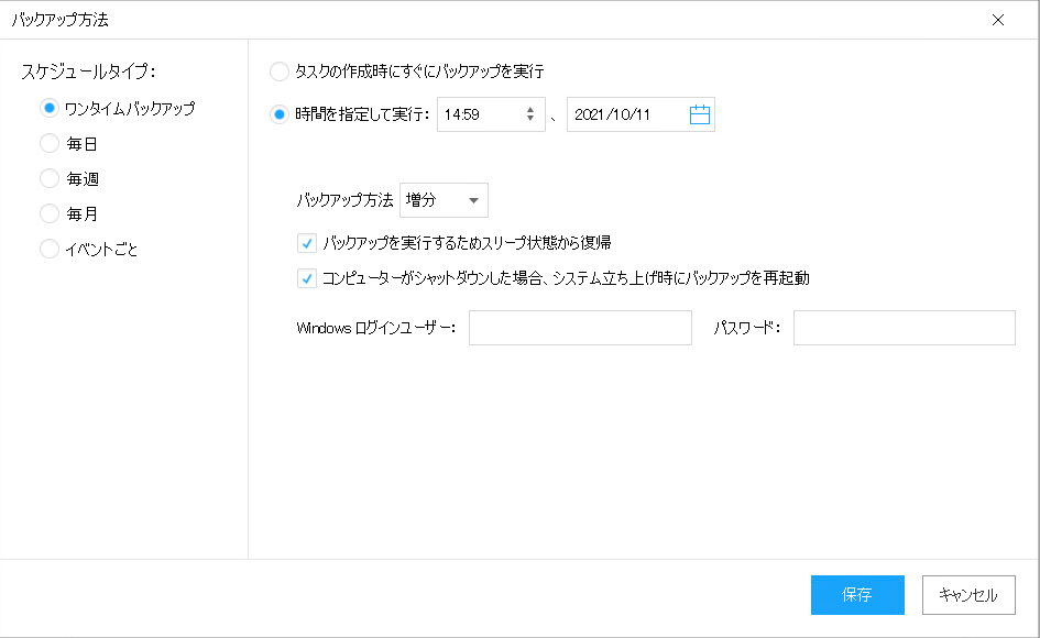 スケジュール設定をすることでバックアップ方式が「増分」や「差分」に変更可能なようです。