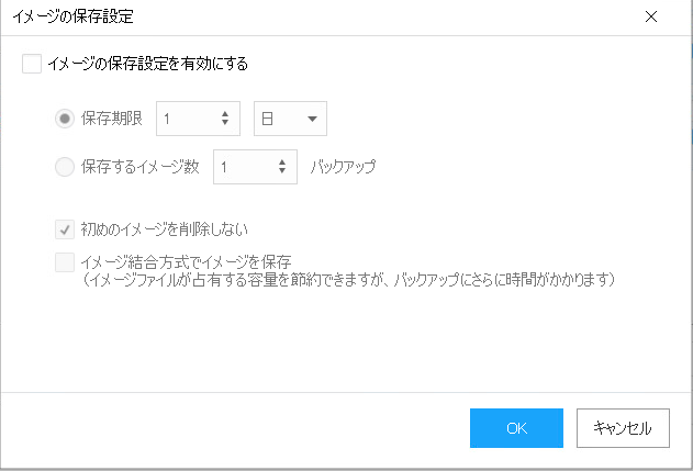 ⇒保有するバックアップの数や期限を設定出来るようです。