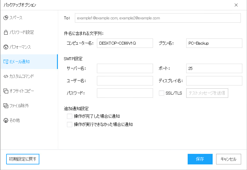 ⇒バックアップ処理後のメール通知設定箇所