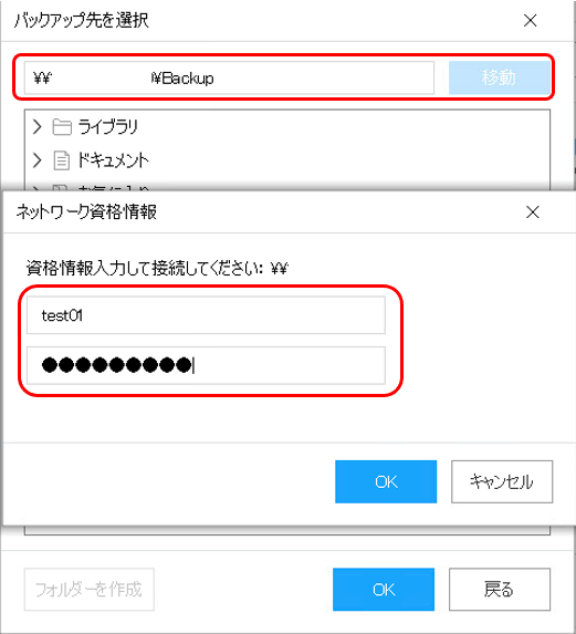 今回はネットワーク上の共有フォルダをバックアップ先として指定します。